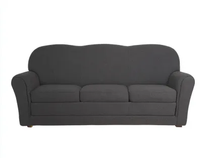 Le canapé est recouvert d'un tissu gris foncé à la texture régulière et résistante. La structure interne assure une bonne solidité et un maintien équilibré, tandis que le rembourrage offre un confort adapté à une utilisation prolongée.