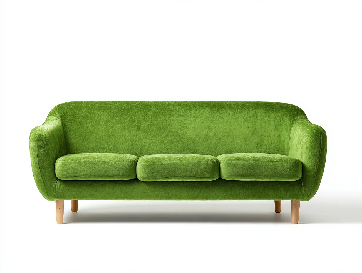 La structure est réalisée à partir d'un cadre solide, recouvert d'un tissu vert à l'aspect doux et homogène. Le rembourrage de l'assise et du dossier est réparti de manière uniforme afin d'assurer un bon maintien et une utilisation durable.