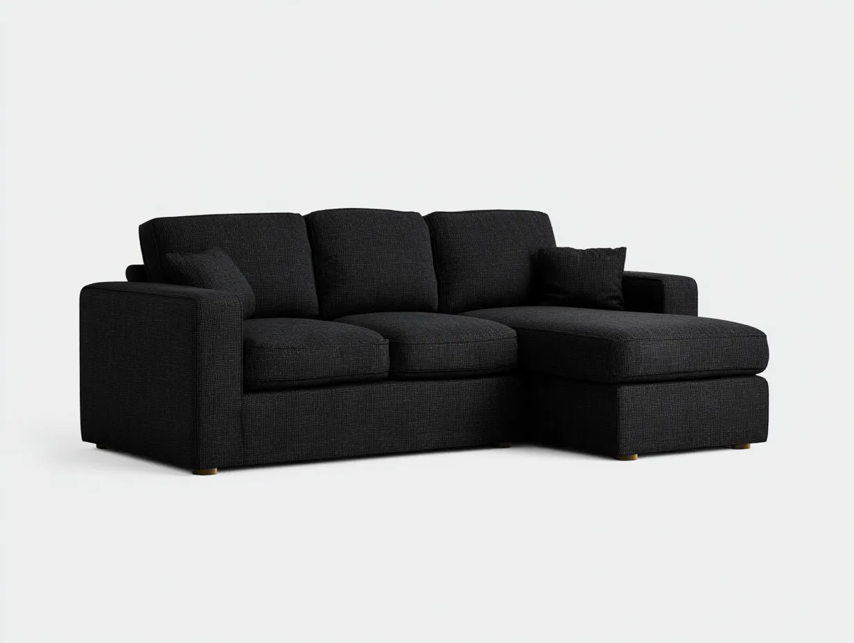 Ce canapé d'angle est conçu pour structurer un espace de salon tout en offrant une surface d'assise généreuse et confortable. Son format en angle permet d'optimiser l'agencement de la pièce et convient parfaitement à un usage quotidien dans un intérieur moderne.