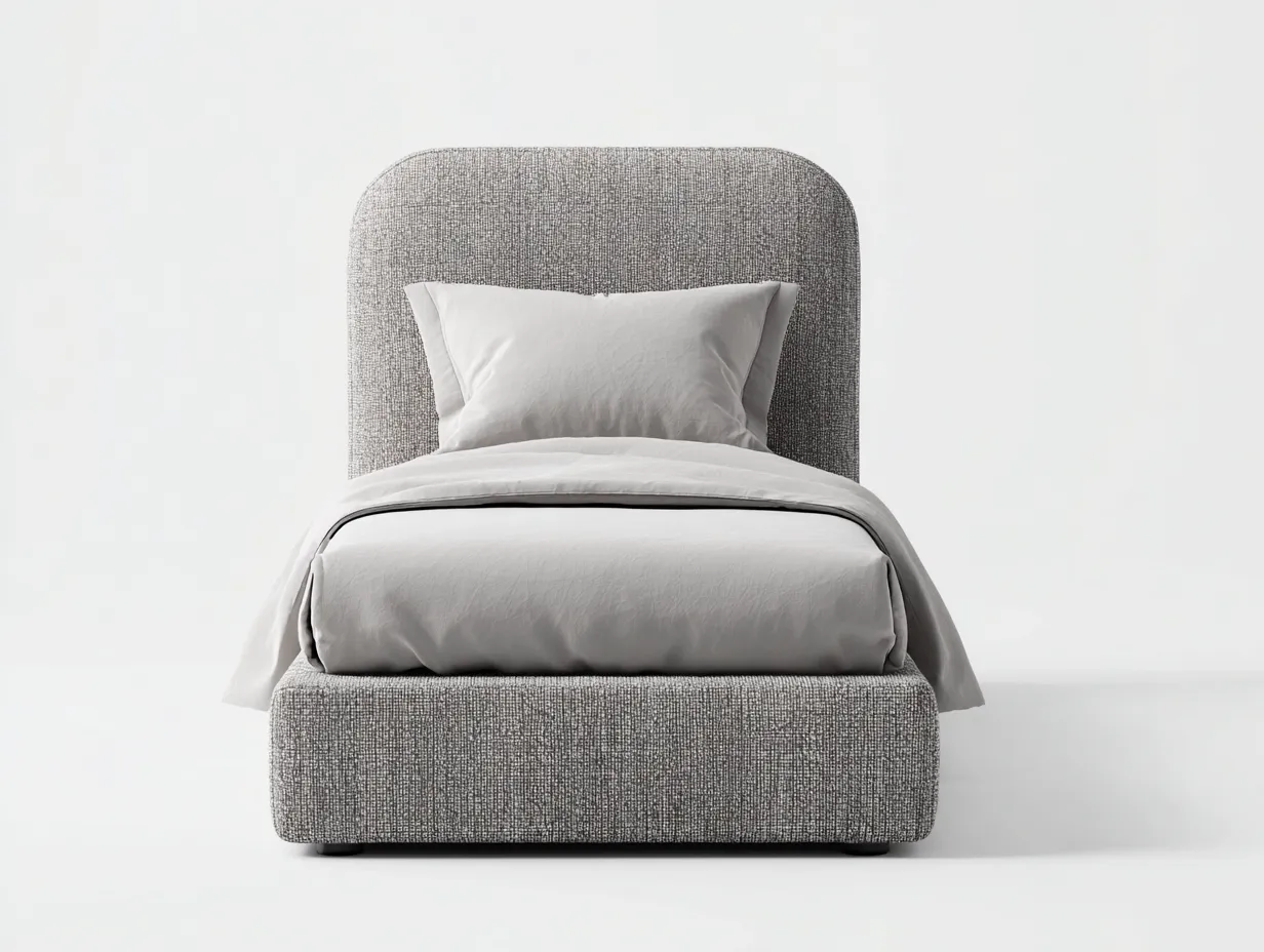 Le revêtement rembourré améliore le confort d'utilisation et contribue à une ambiance chaleureuse. La tête de lit aux lignes arrondies apporte un équilibre visuel et s'inscrit dans un design moderne et discret.